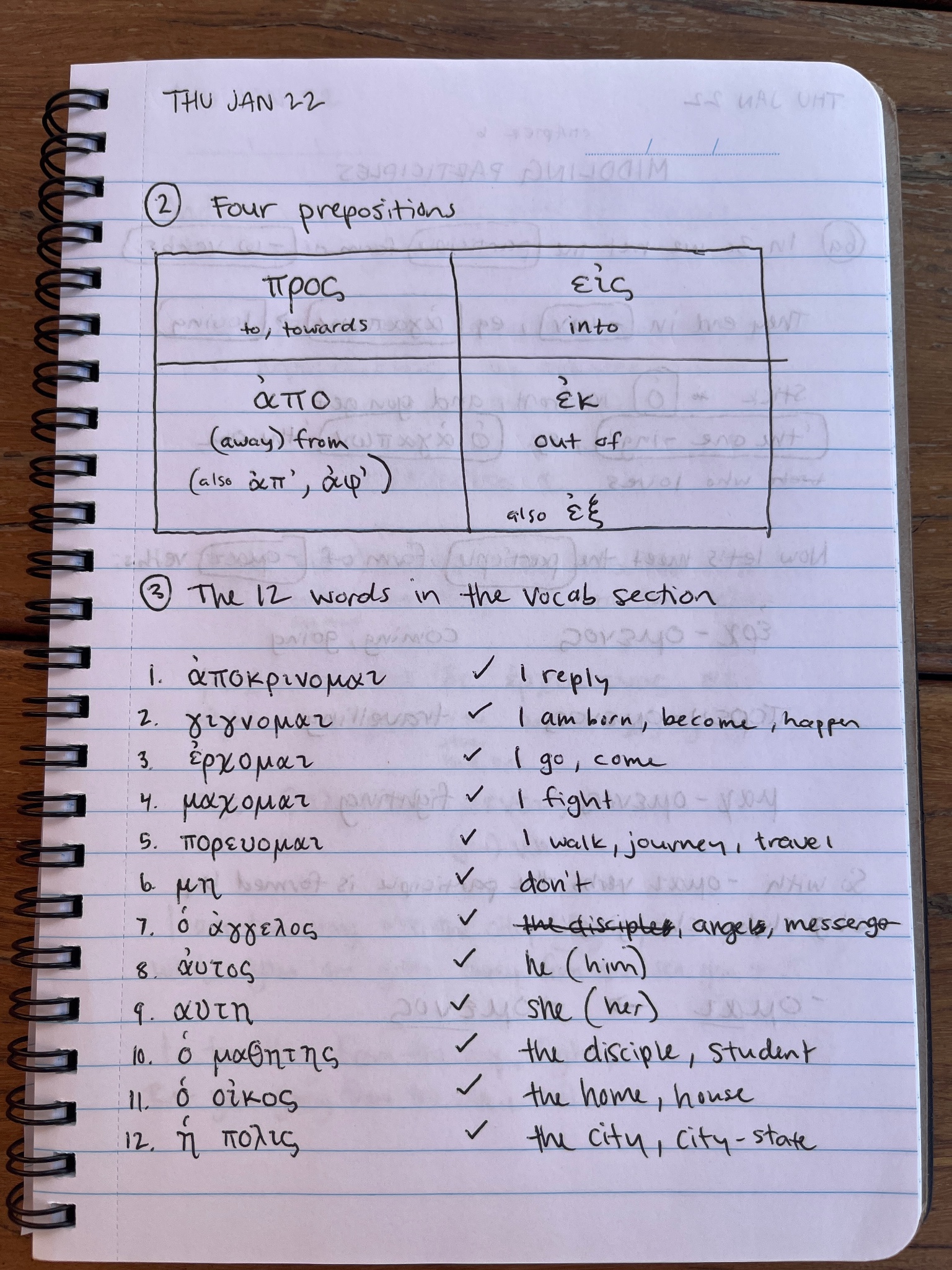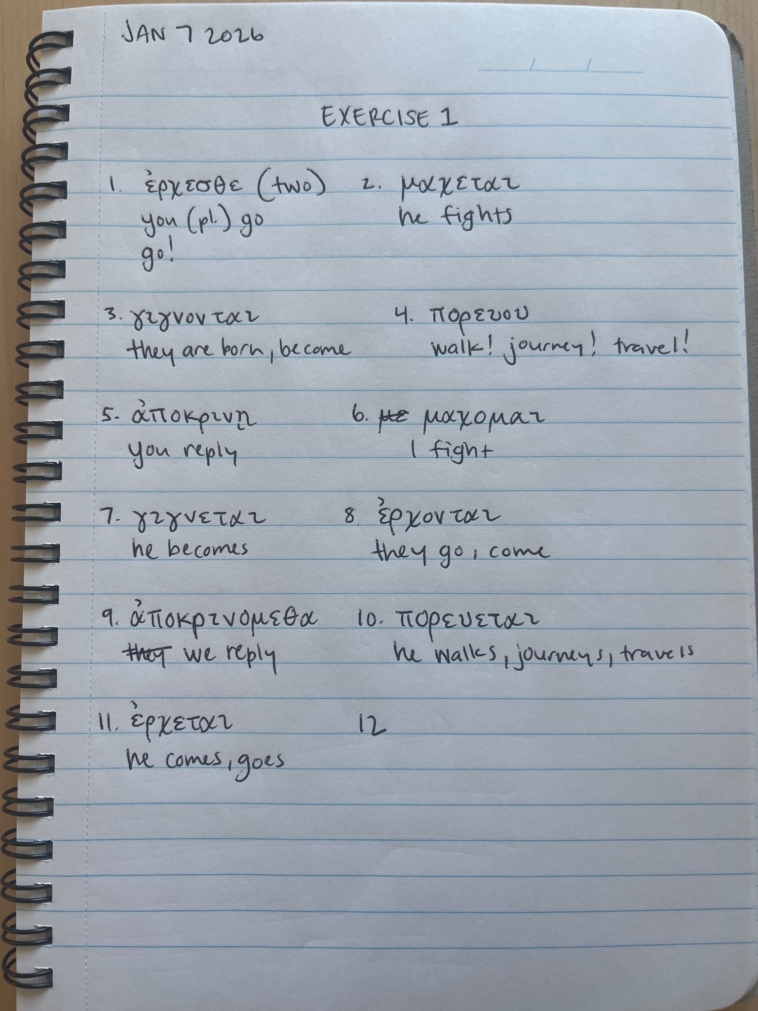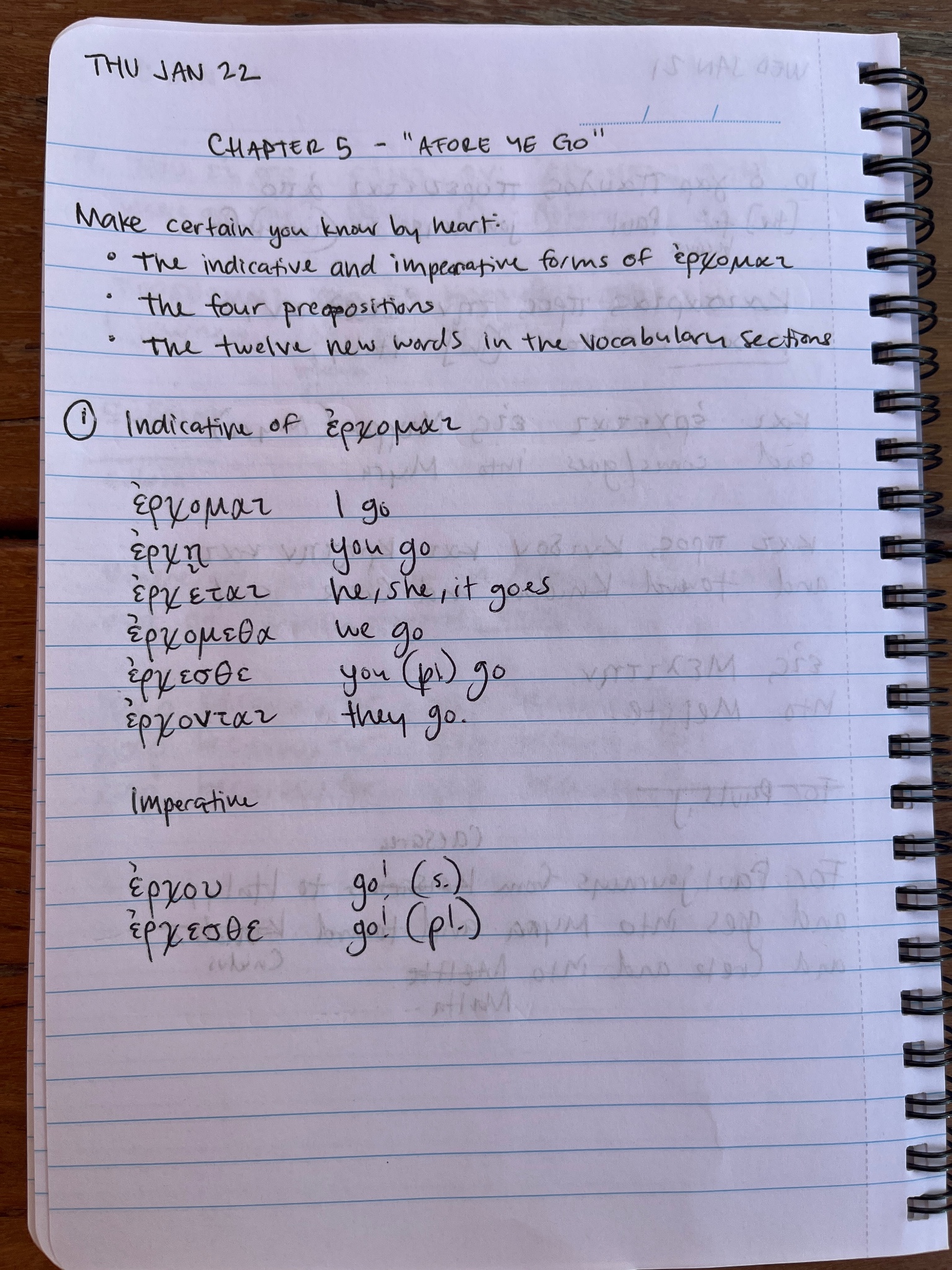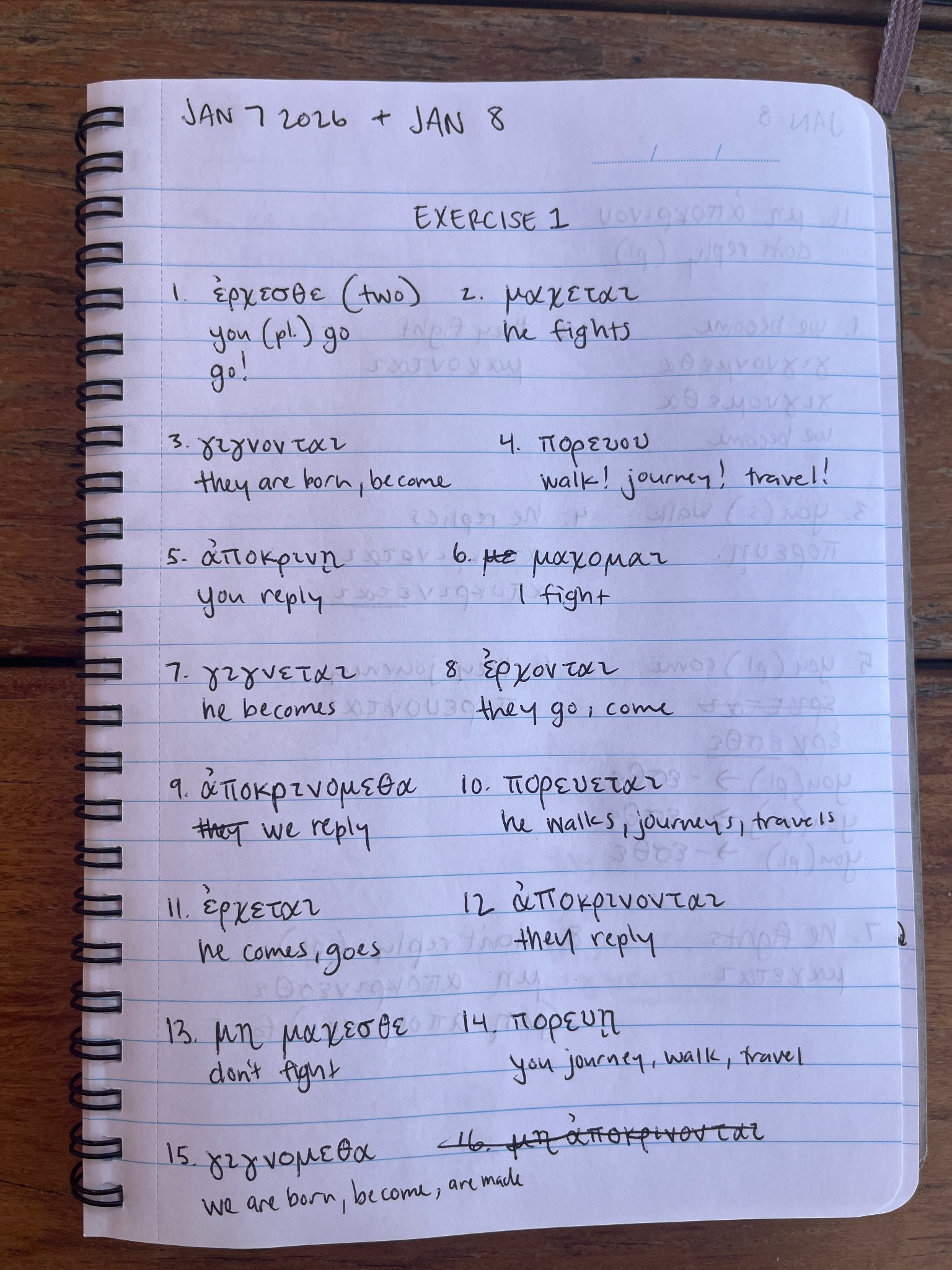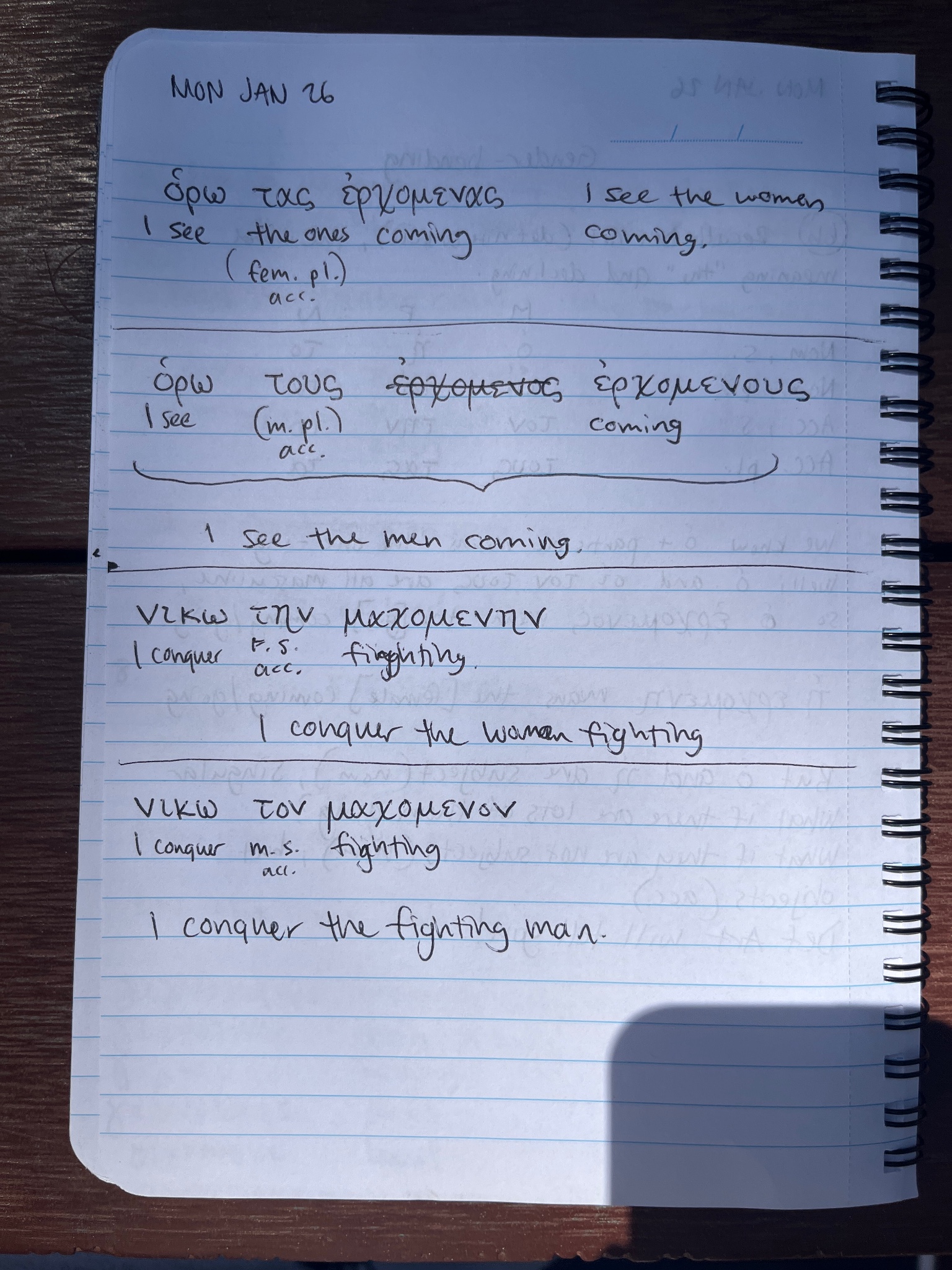 Finished my Ancient Greek lesson for today. Typed up my Chapter 3 notes in Notion. Hoping to move that over to this site soon.