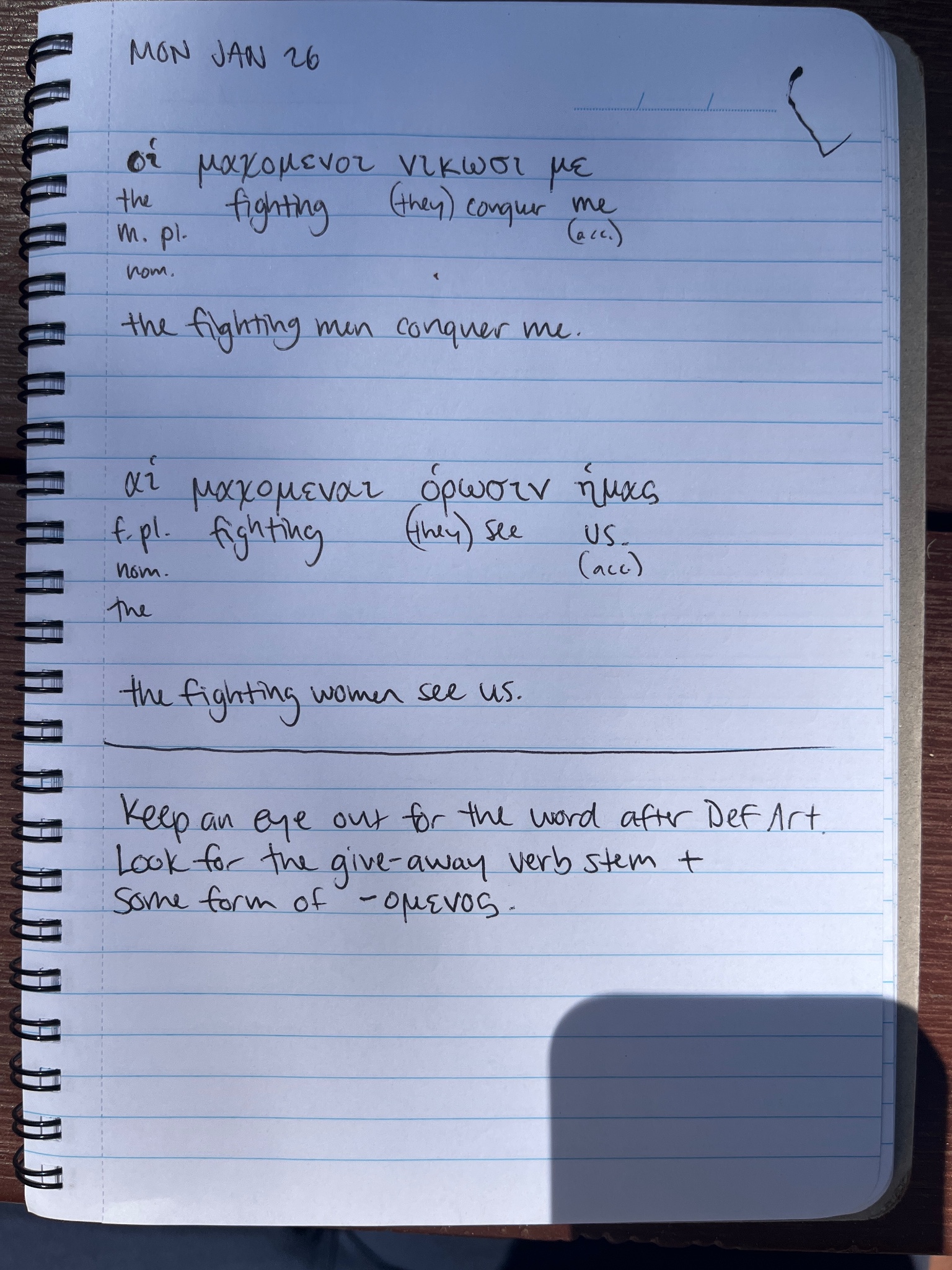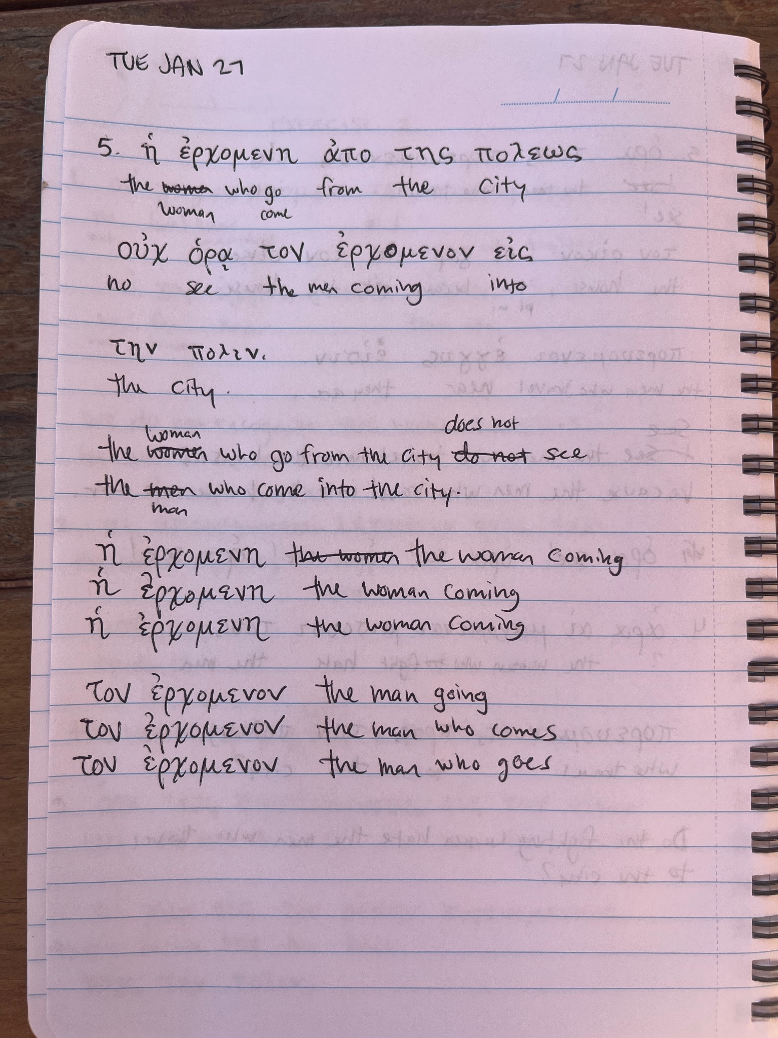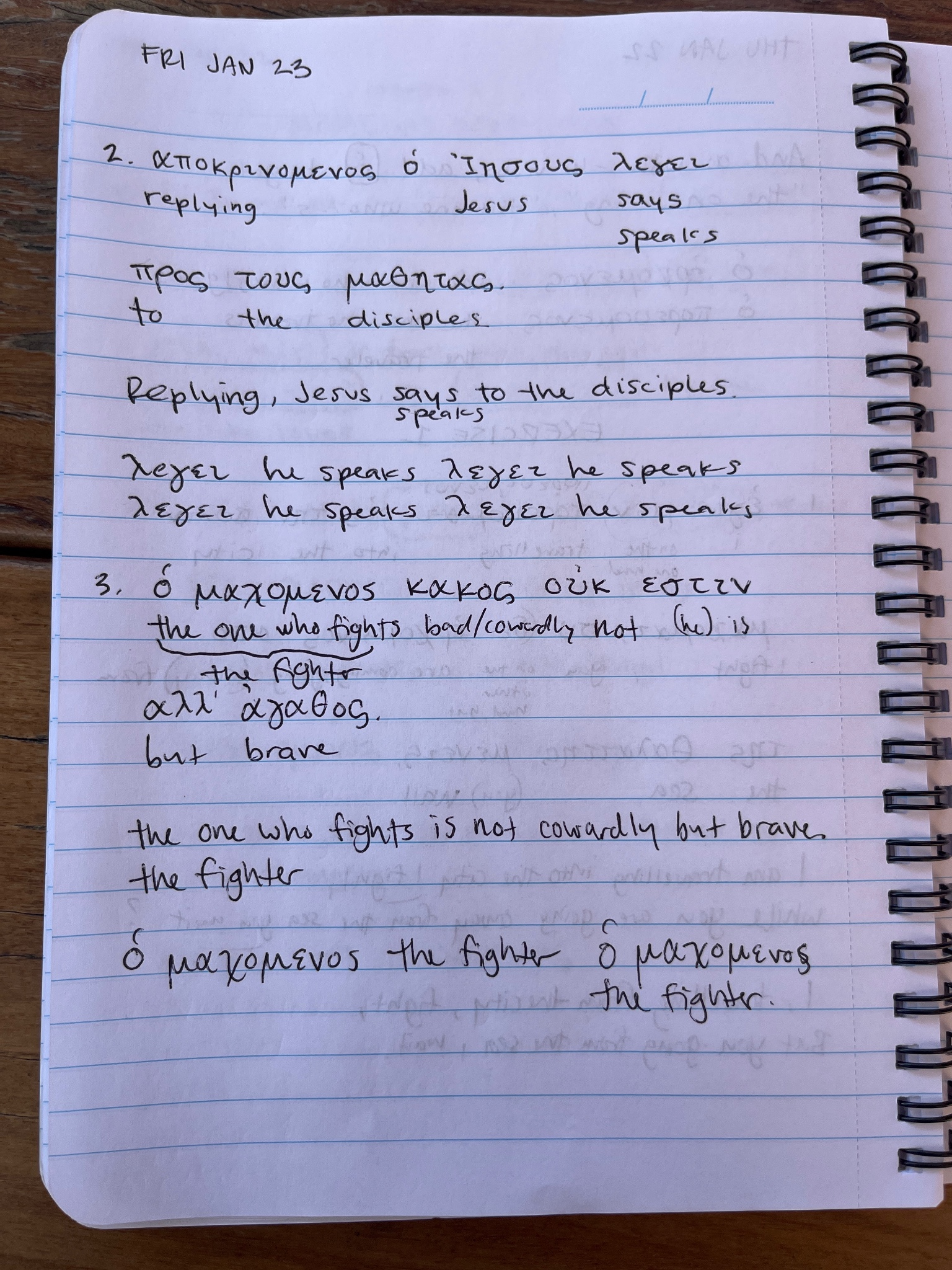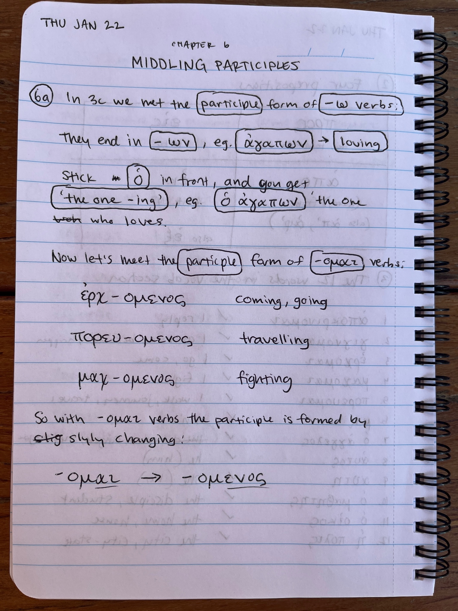 Finished my Ancient Greek lesson for today. Typed up my Chapter 3 notes in Notion. Hoping to move that over to this site soon.