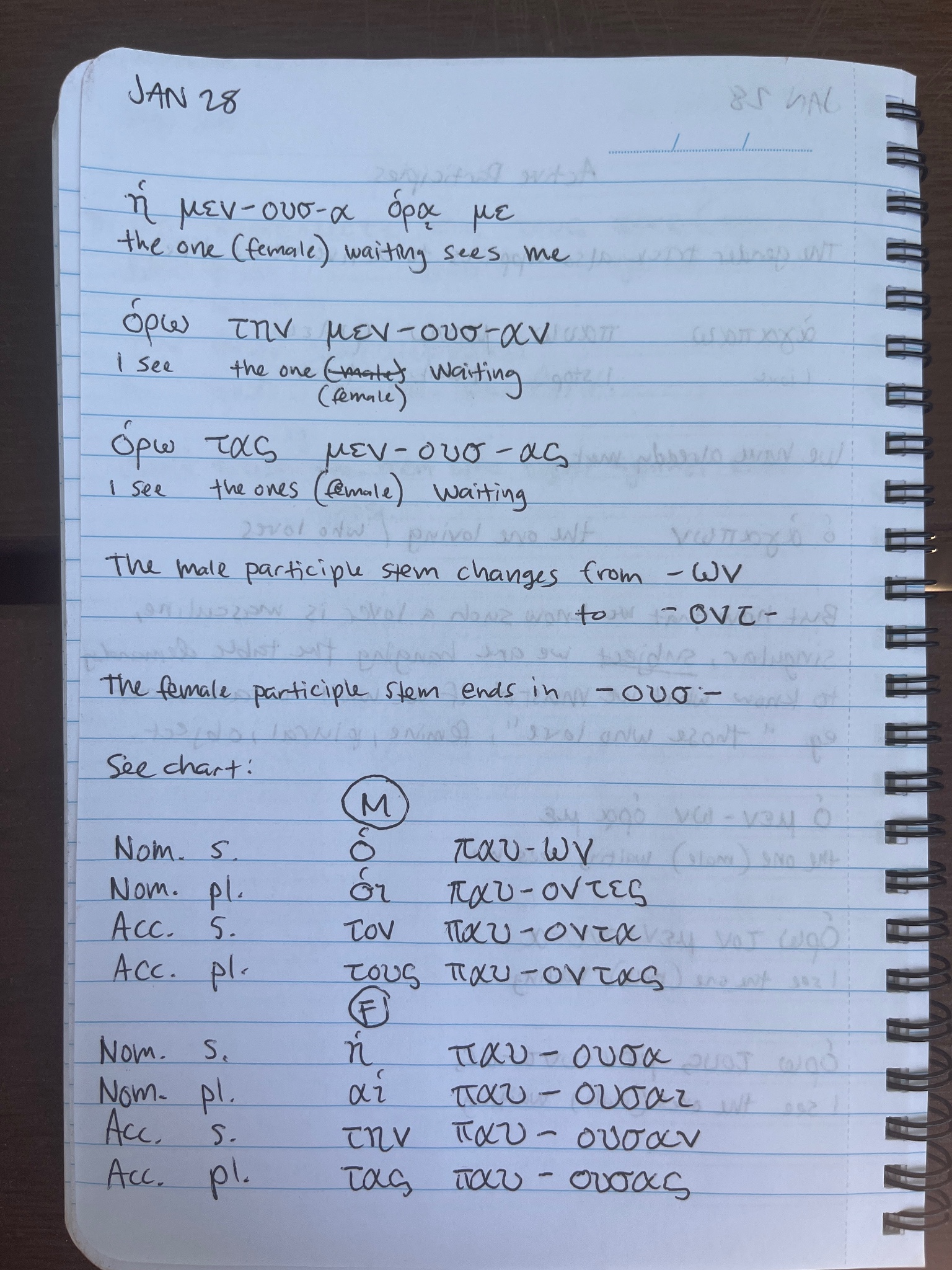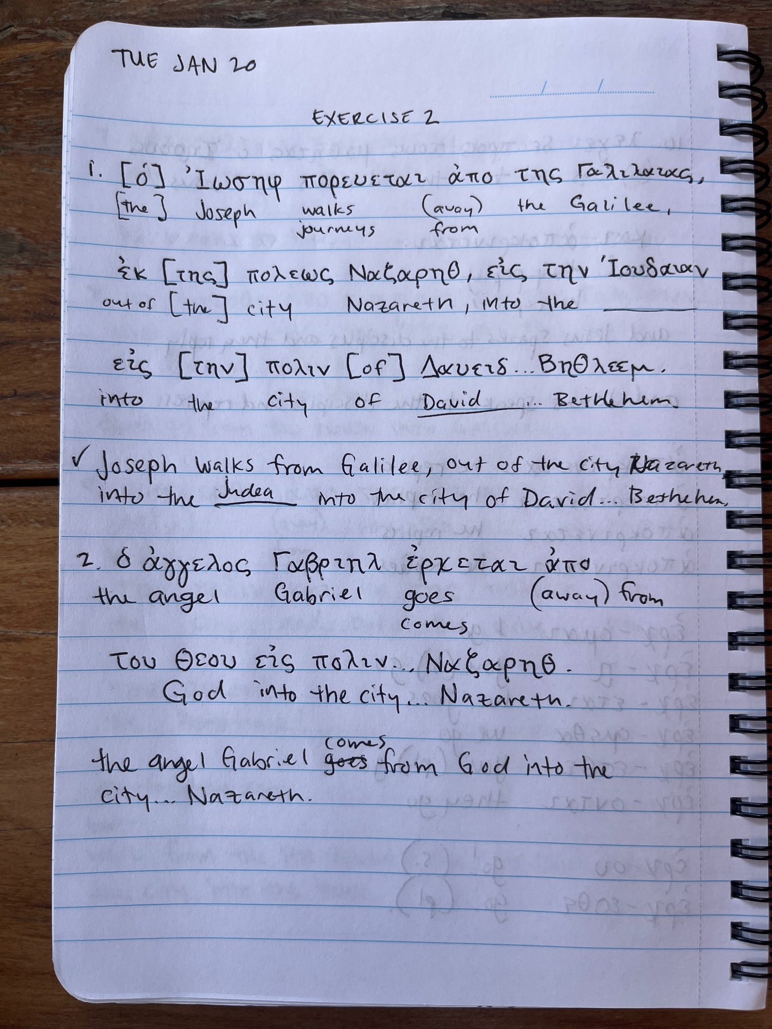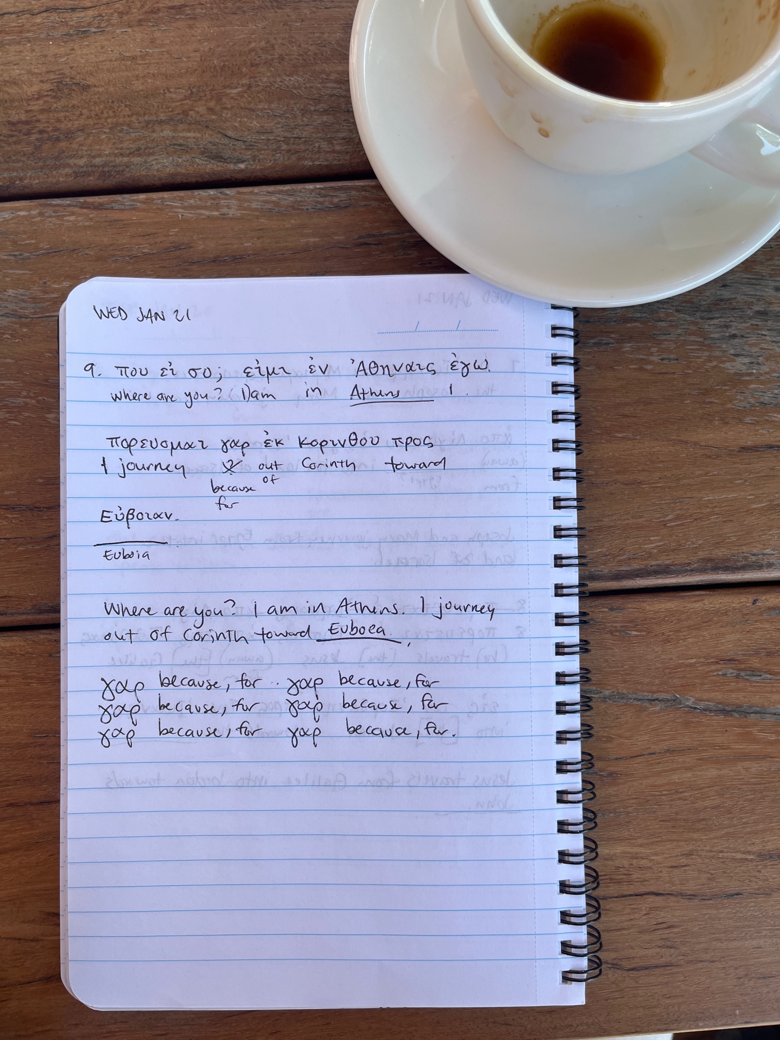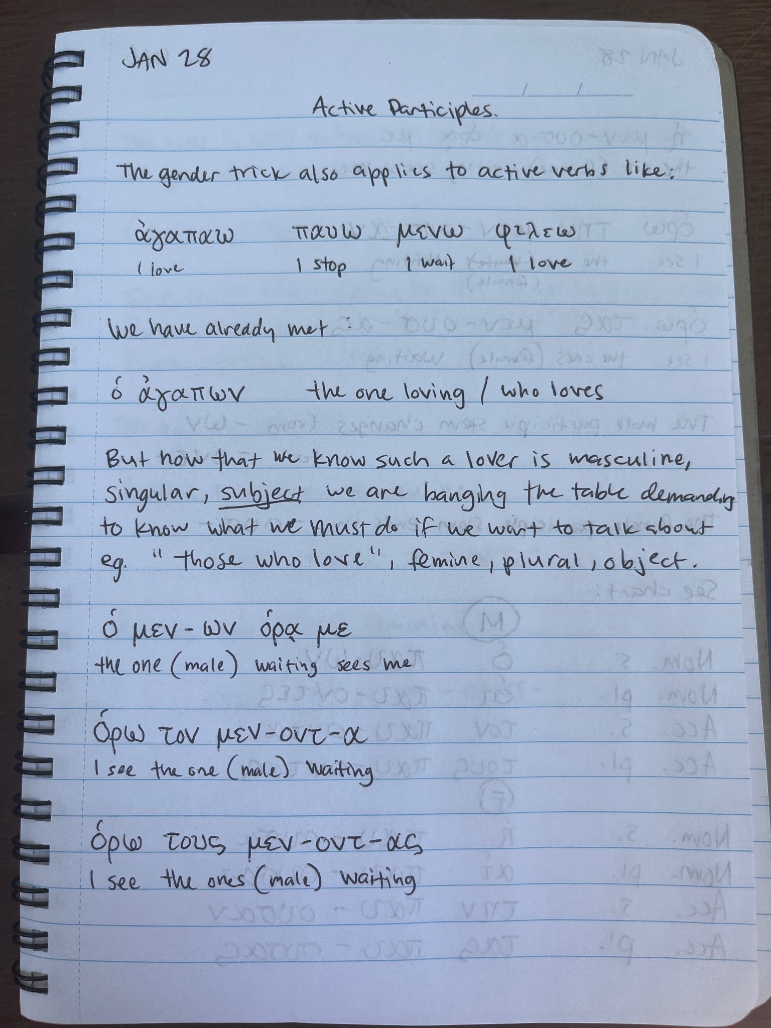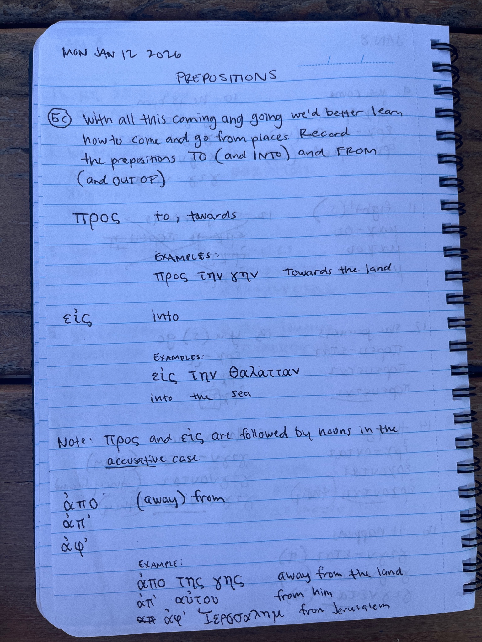 Finished my Ancient Greek lesson for today. Typed up my Chapter 3 notes in Notion. Hoping to move that over to this site soon.