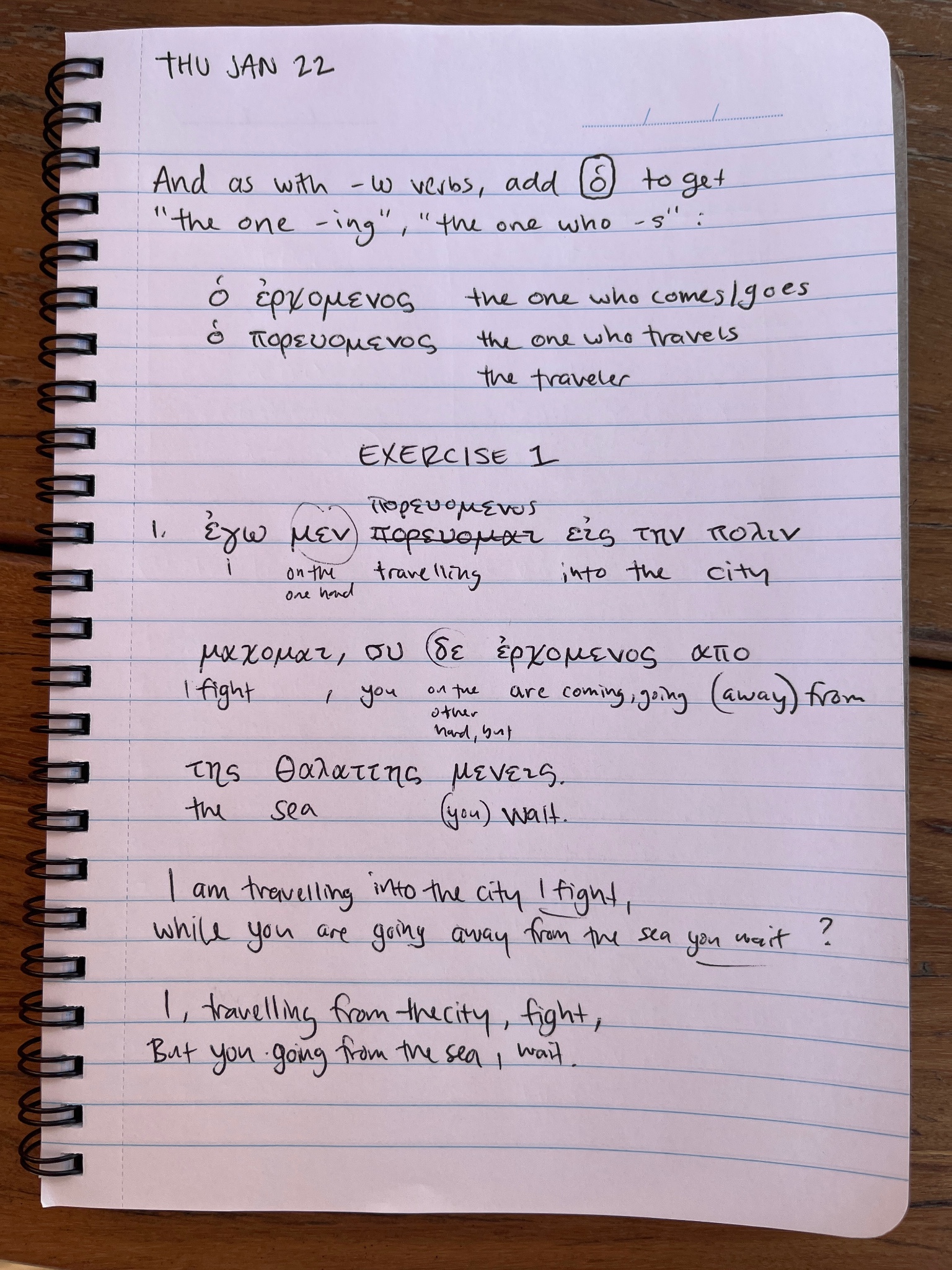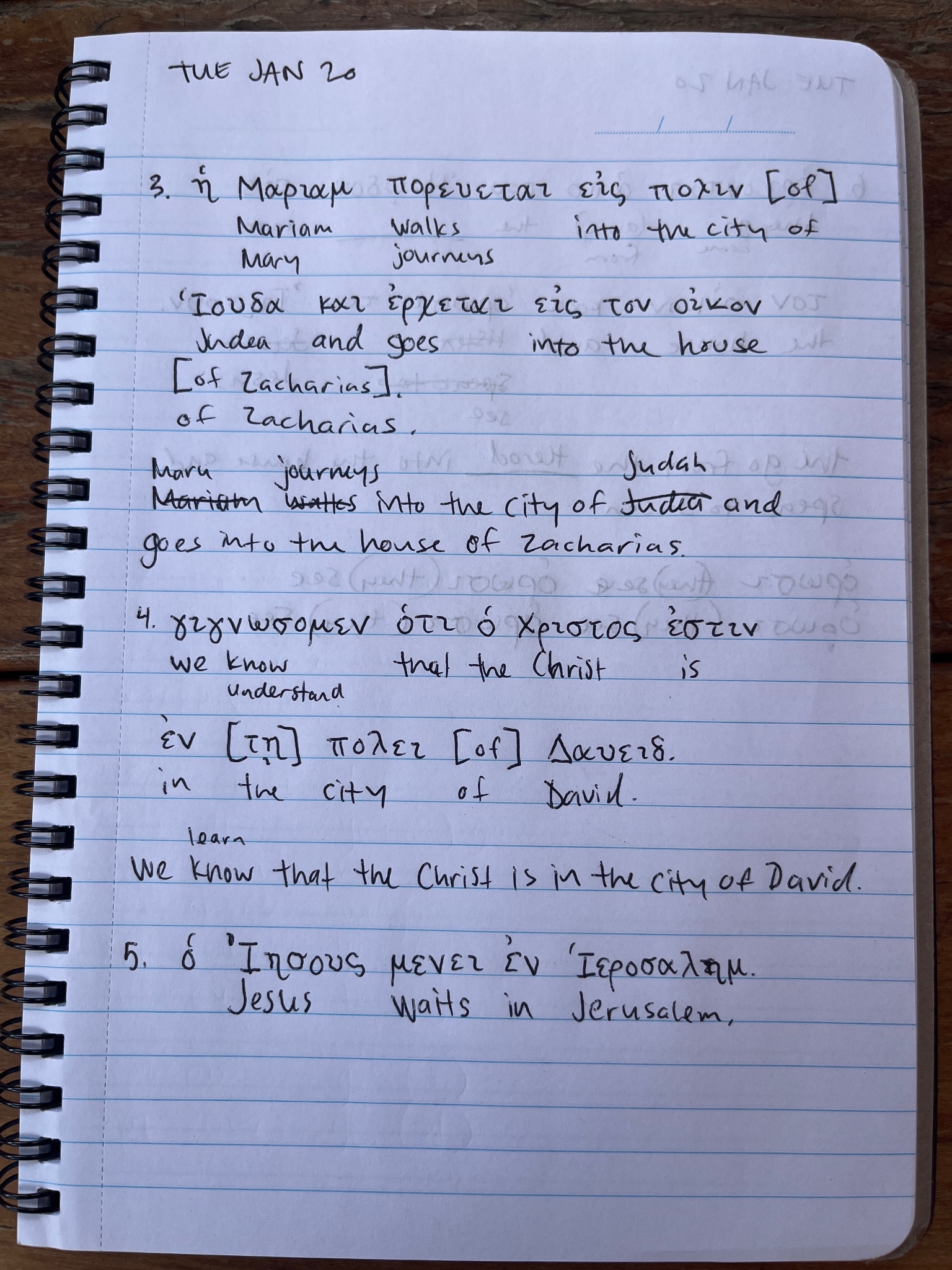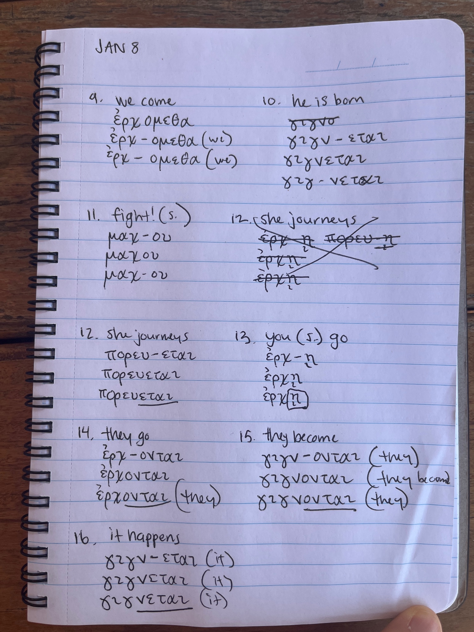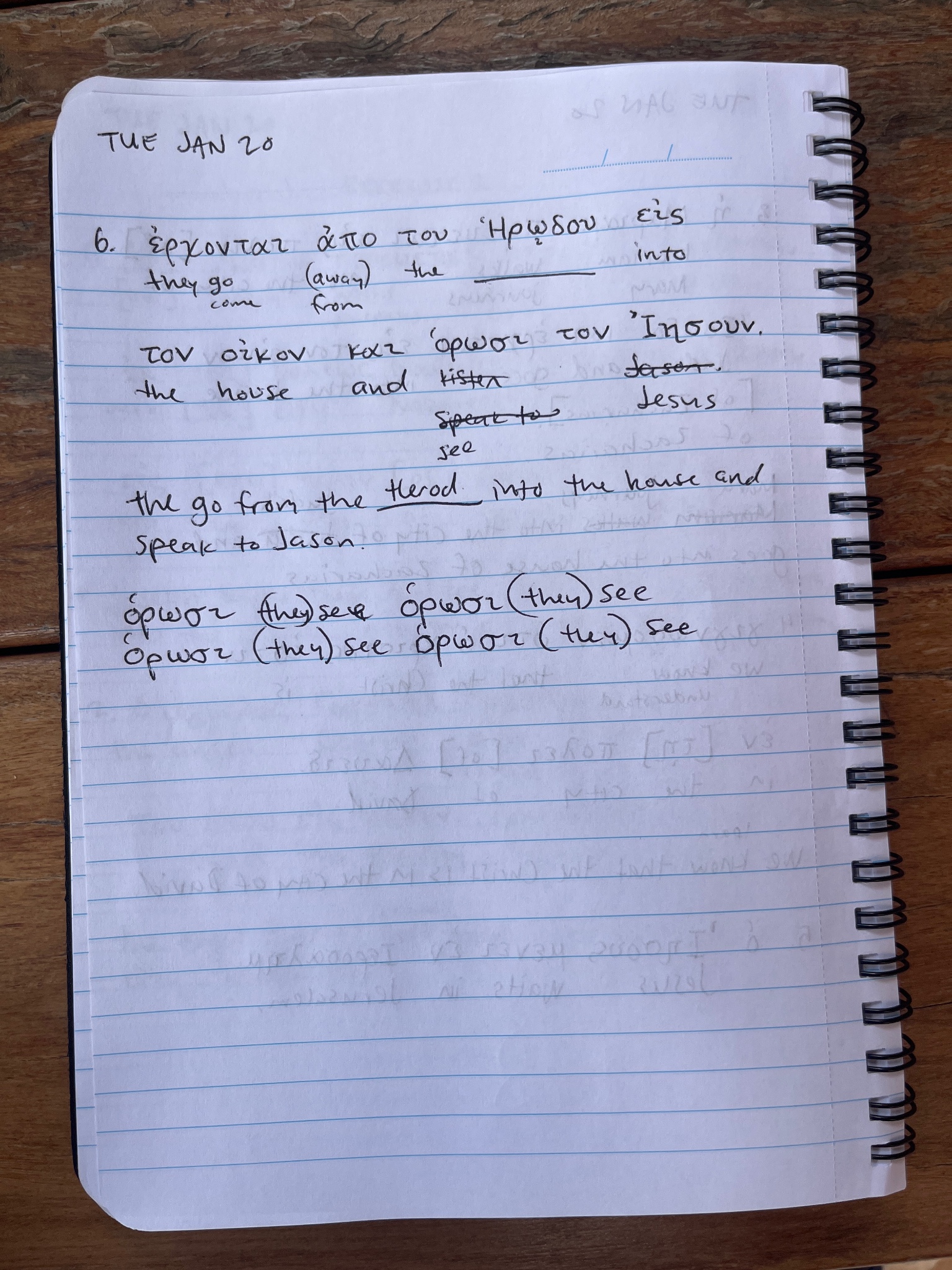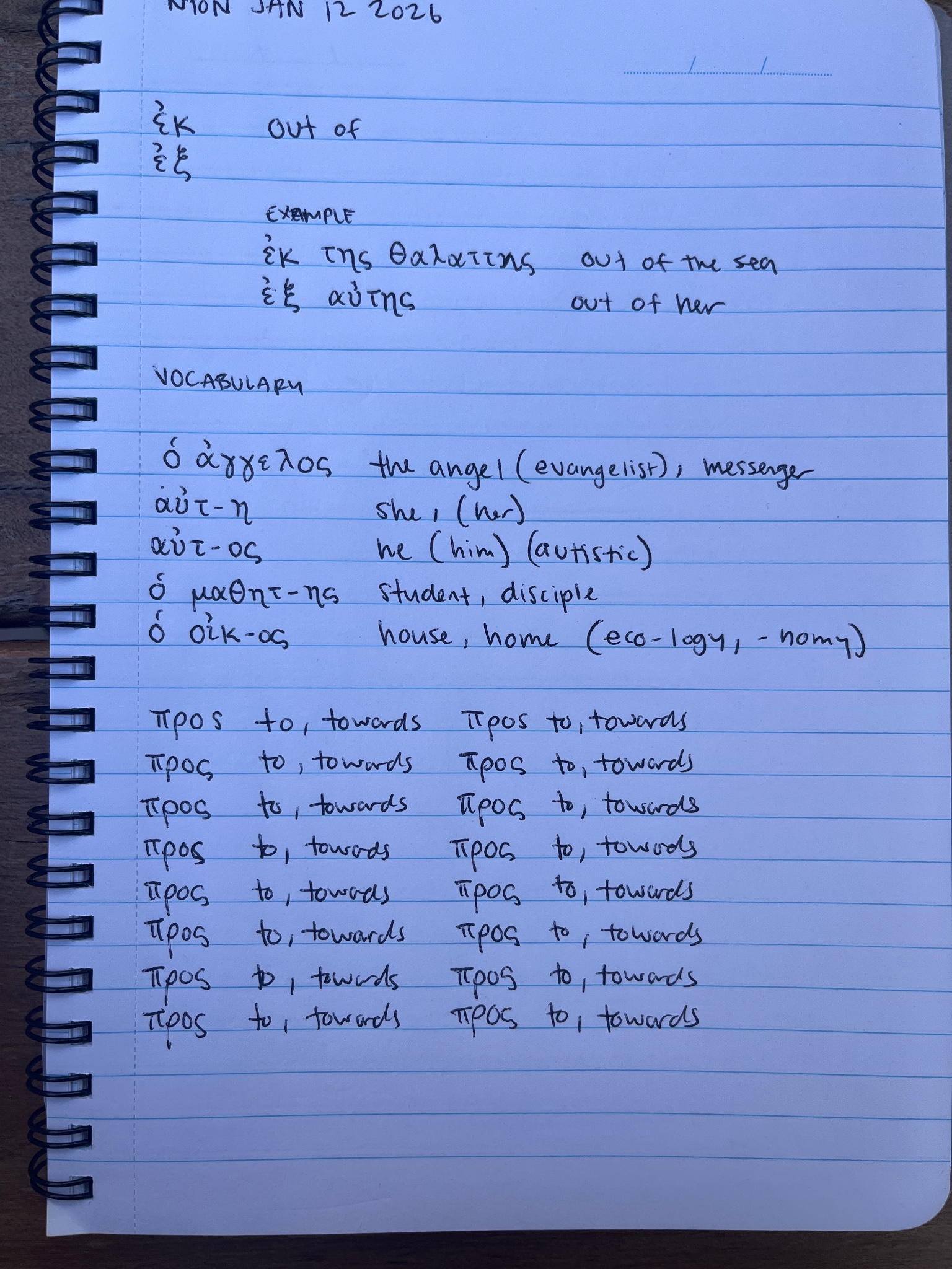 Finished my Ancient Greek lesson for today. Typed up my Chapter 3 notes in Notion. Hoping to move that over to this site soon.