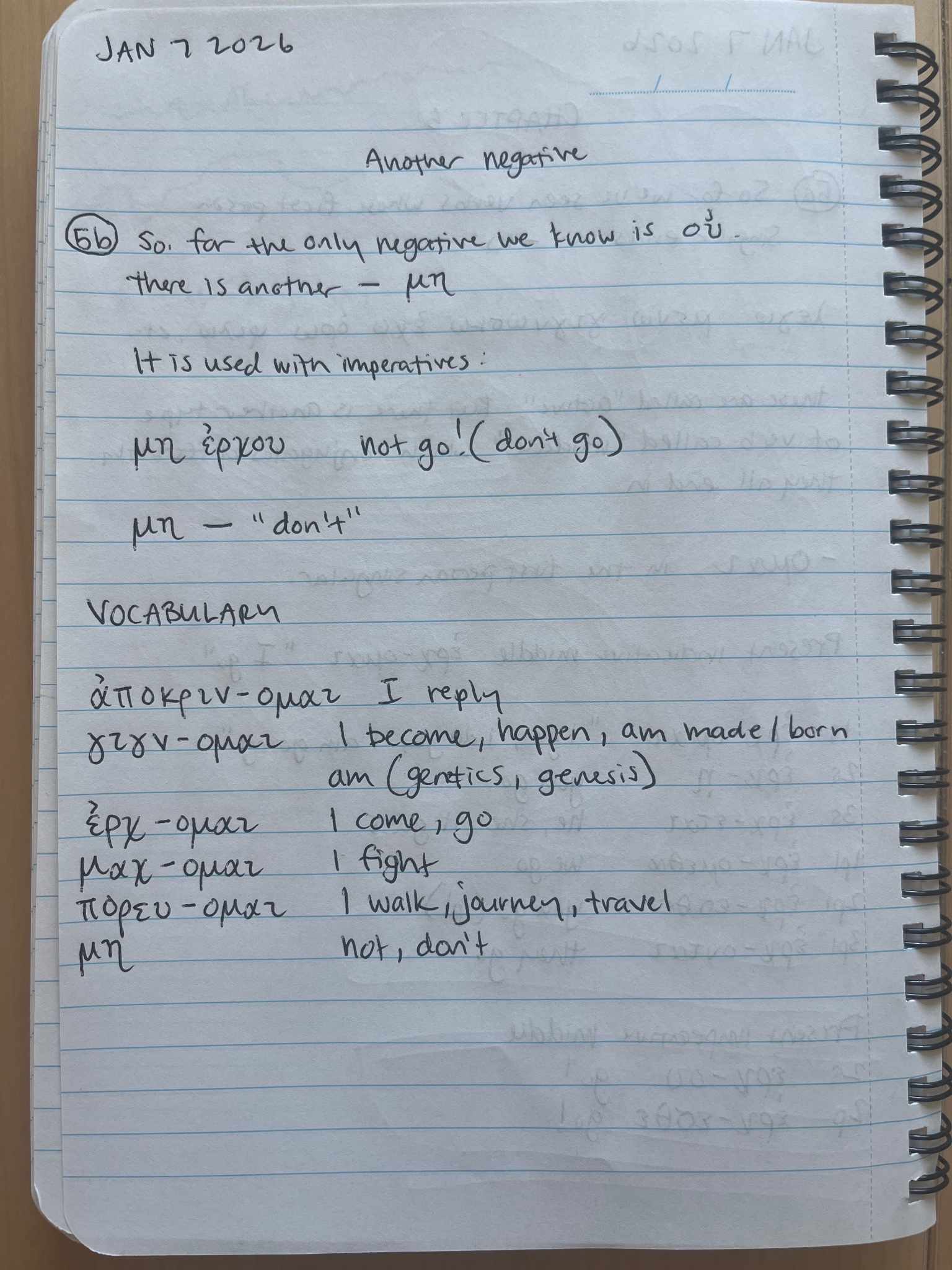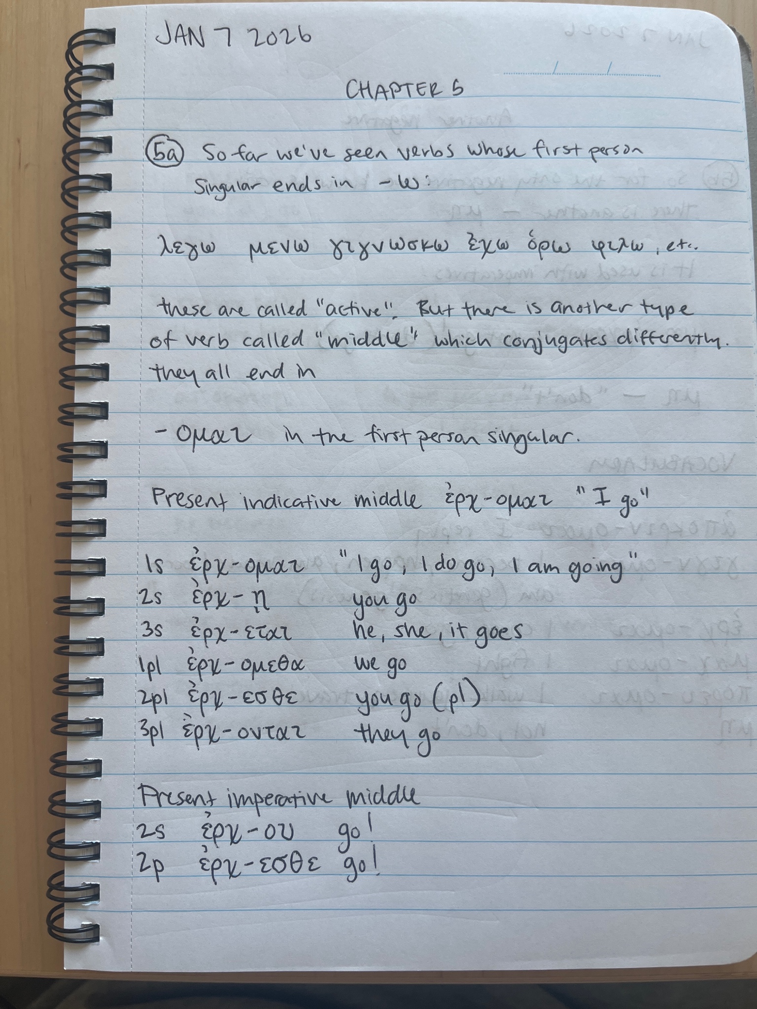 Today’s Greek lesson. Starting chapter 5: middle “oh my” verbs and a new negative