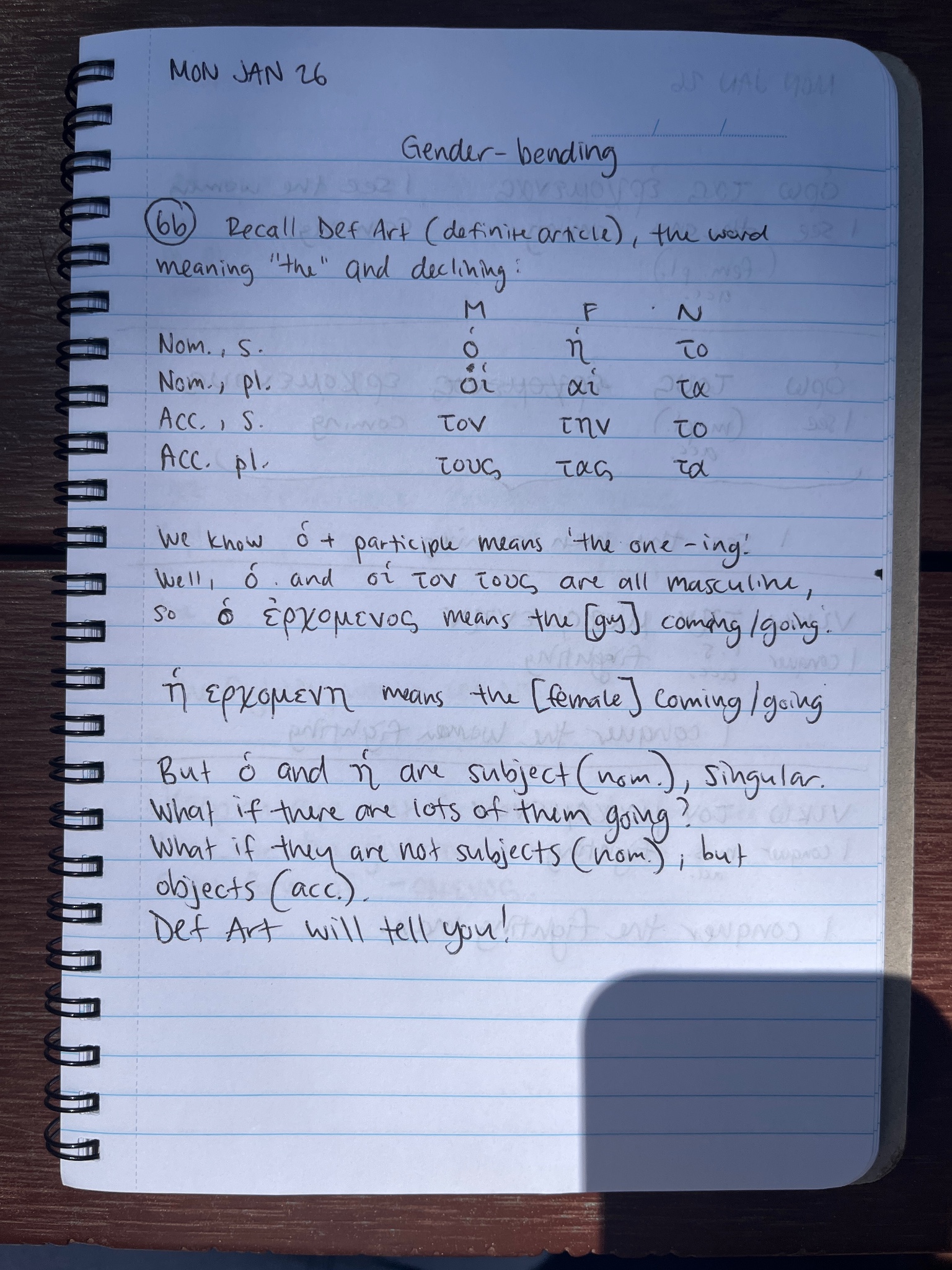 Today’s Greek lesson. Determining the gender of people doing the thing based on the definite article